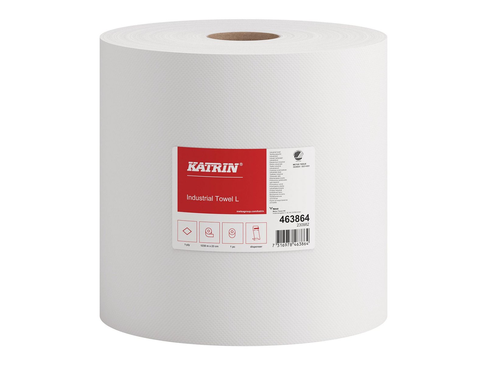 Aftørringsrulle Industri Katrin Plus 1-lag Ø38.5cm B23cmxL1230m Nyfiber Hvid