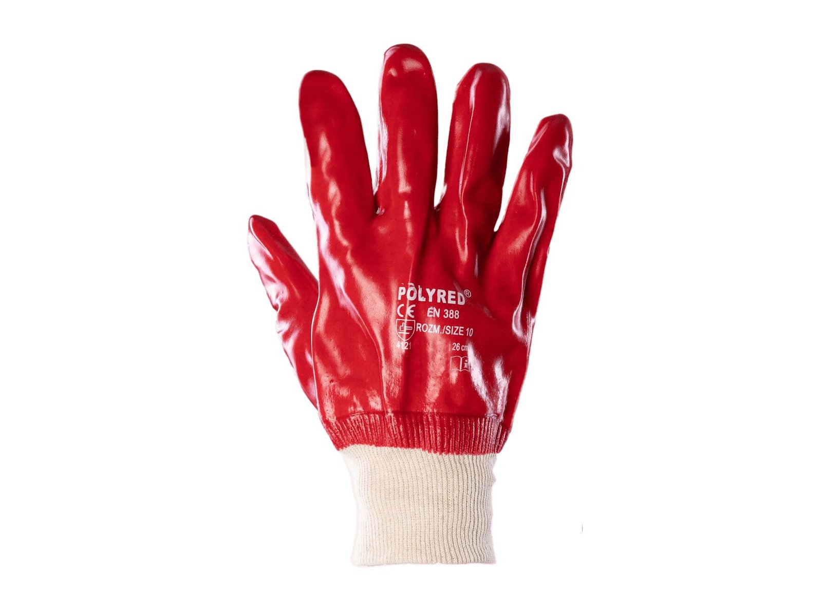 Handske med PVC belægning, hvilket gør dem velegnede til brug i våde omgivelser.