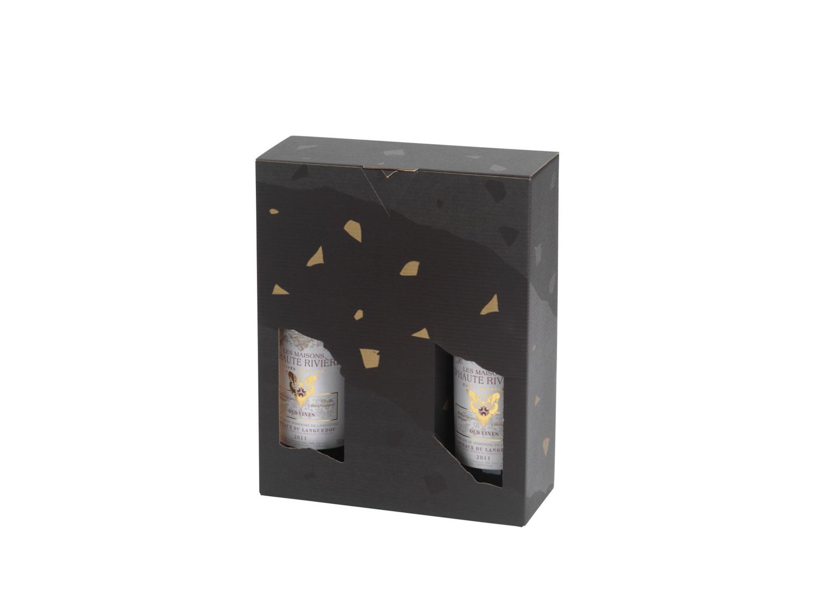 Vinkarton L24.6xB8.5xH36cm Pap med med vindue sort til 3 flasker