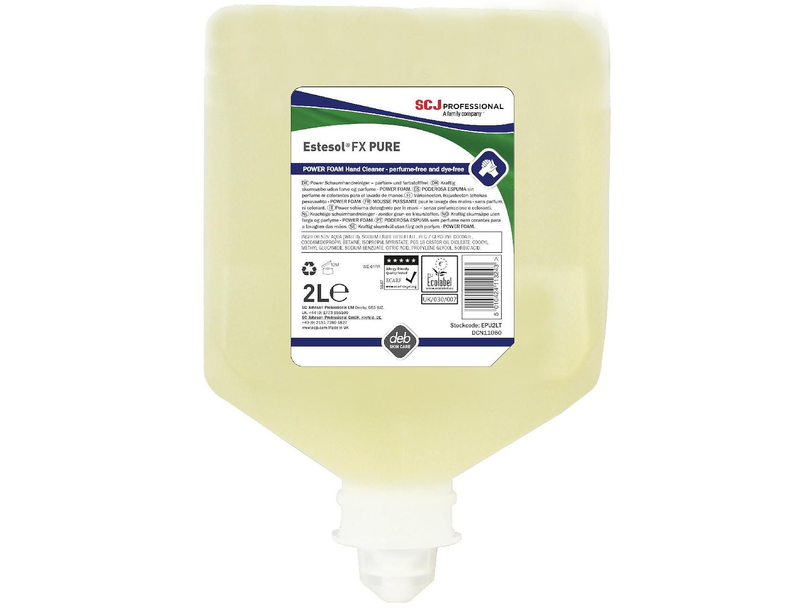 Skumsæbe Estesol FX Pure ekstra kraftig uden farve og parfume t dispenser 2 ltr