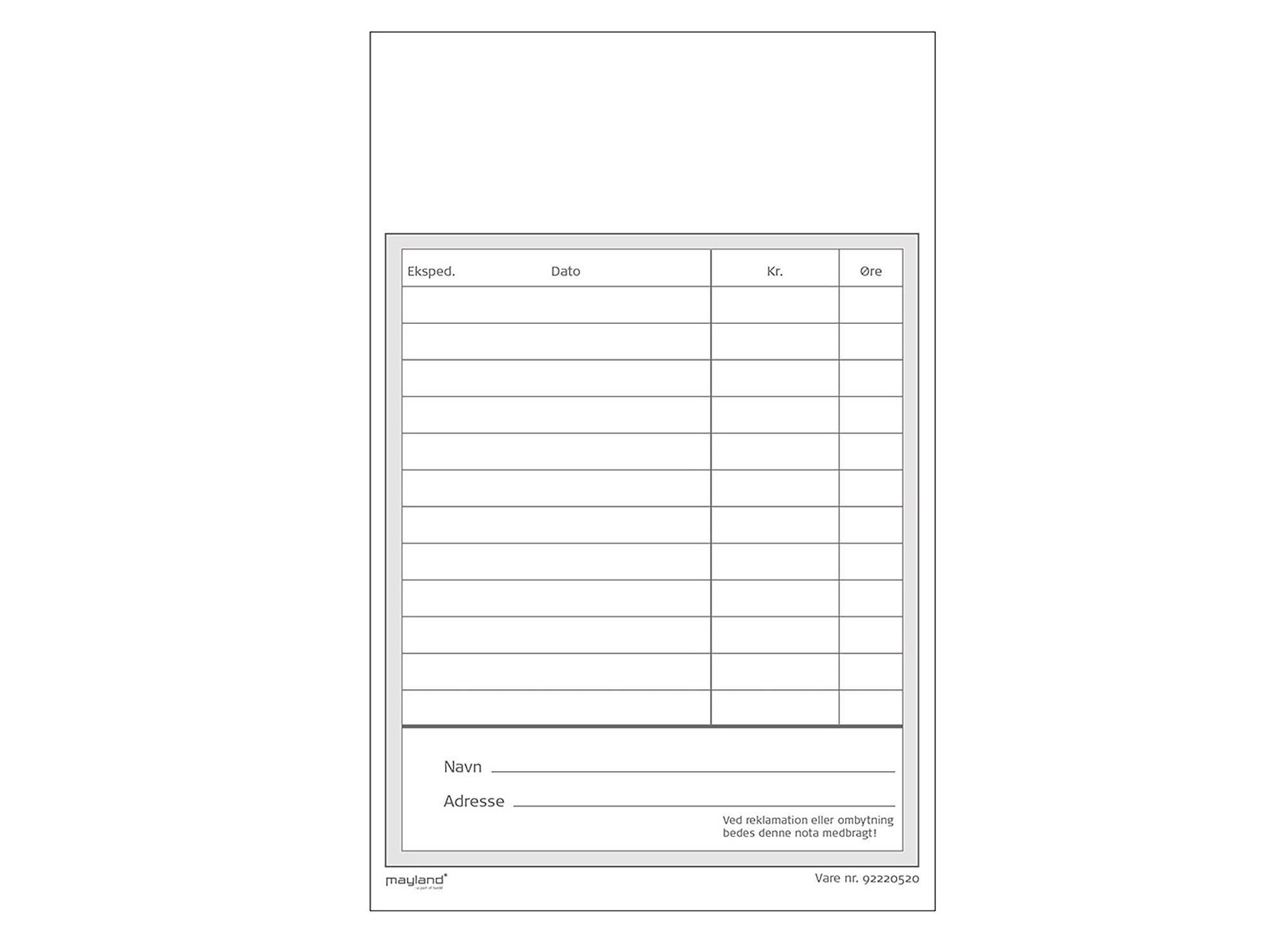 Kasseblok 100 ark hvid perforeret papir L178xB100xH8mm