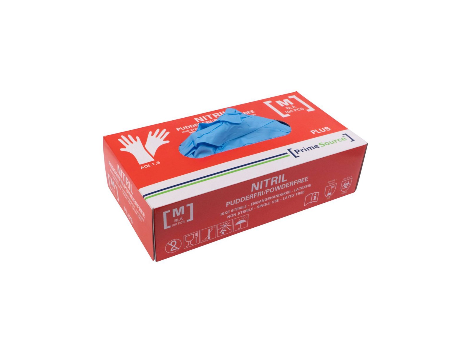 Handske Engangs Prime Source PLUS str M Nitril uden Pudder Blå AQL 1.5