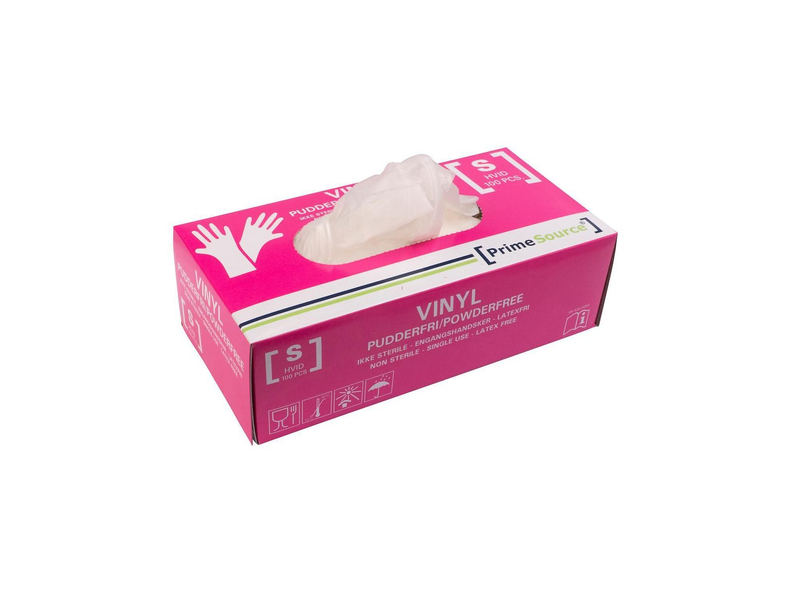 Handske Engangs Prime Source str S uden Pudder Vinyl AQL 1.5 Hvid