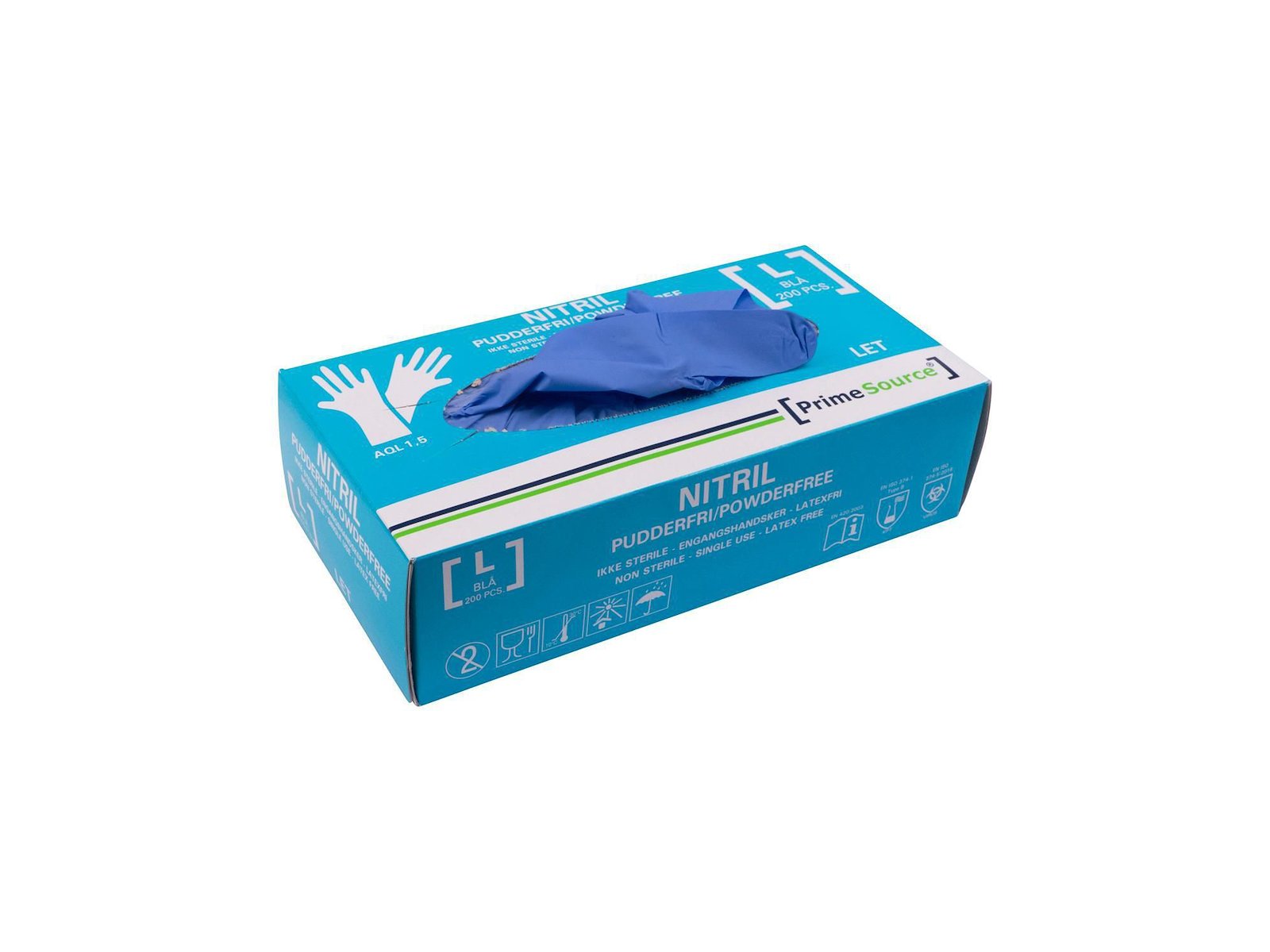 Undersøgelseshandske Engangs Prime Source str L uden Pudder Nitril AQL 1.5 Blå
