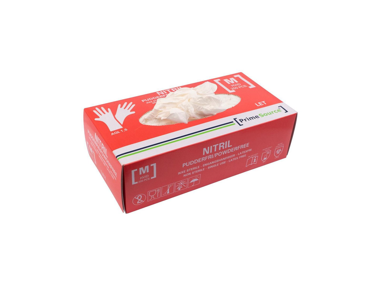 Undersøgelseshandske Engangs Prime Source str M uden Pudder Nitril AQL 1.5 Hvid