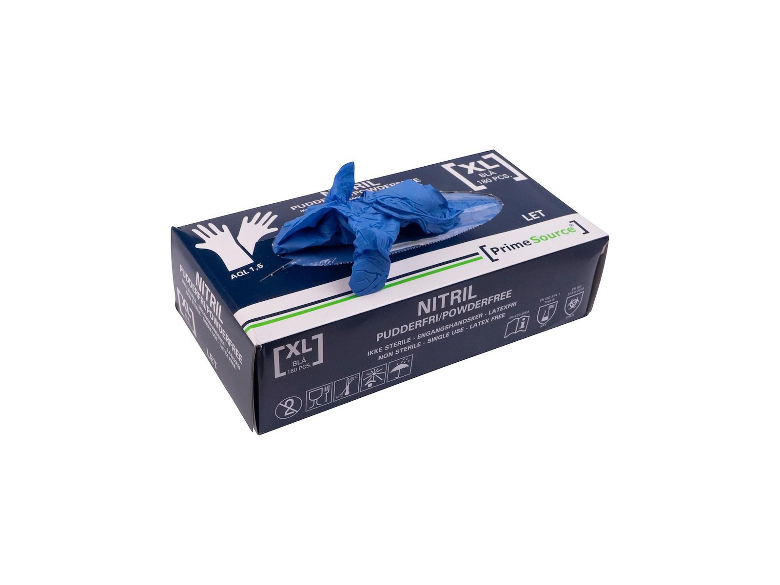 Undersøgelseshandske Engangs Prime Source str XL uden Pudder Nitril AQL 1.5 Blå