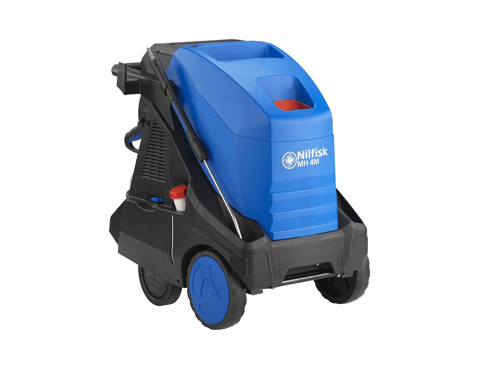 De fire store hjul og det velplacerede tyngdepunkt giver MH 4M-renseren den bedst mulige mobilitet og gør den let at transportere på forskellige overfladetyper. Optimal tilbehørsopbevaring er sikret med dobbelt dyserørsholder, svingbar kabelkrog til nem afrulning af strømkablet, innovativ holder til spulehåndtaget og enkel opbevaring af rengøringsmiddelbeholderne.