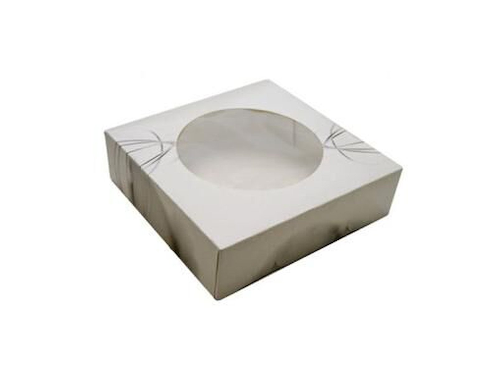 Kageæske hængslet låg S-Line L190xB190xH50mm pap med rude i PLA hvid/grå