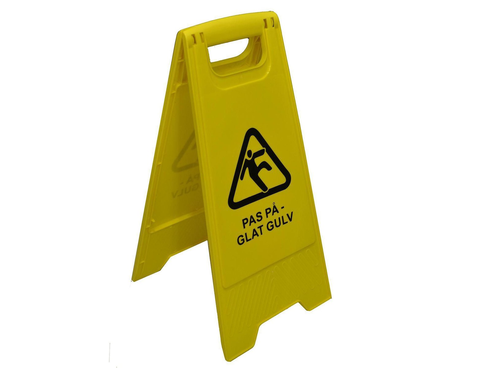 Advarselskilt PAS PÅ - GLAT GULV Billede af mand der falder Gul