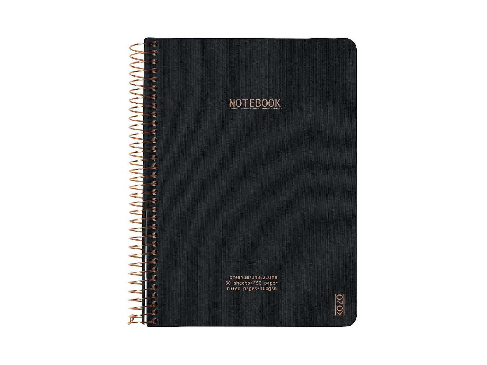KOZO Premium Notesbog A5 Black er en perfekt fusion af æstetik og funktionalitet, designet til at opfylde både professionelle og personlige behov. Med sit elegante sorte lærredsomslag og eksklusive bronzedetaljer emmer denne notesbog af sofistikeret design og høj kvalitet. Det robuste omslag beskytter dine notater, mens den kraftige spiral i bronze gør det let og bekvemt at bladre mellem siderne, så du altid kan finde det, du søger.