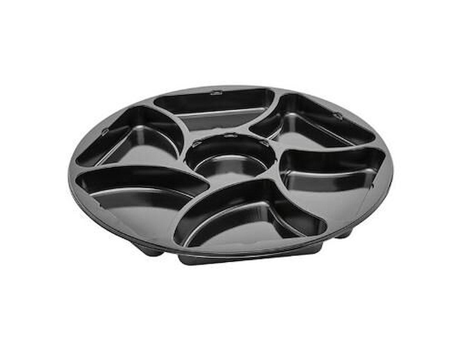 Plastbakke C0321-7A Ø320x25 mm 7-rum CPET rund sort til tapas