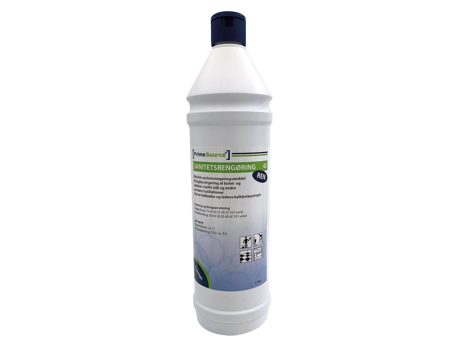 Sanitetsrengøring Prime Source Ren 43 Alkalisk med Farve/Parfume 1 ltr Blå