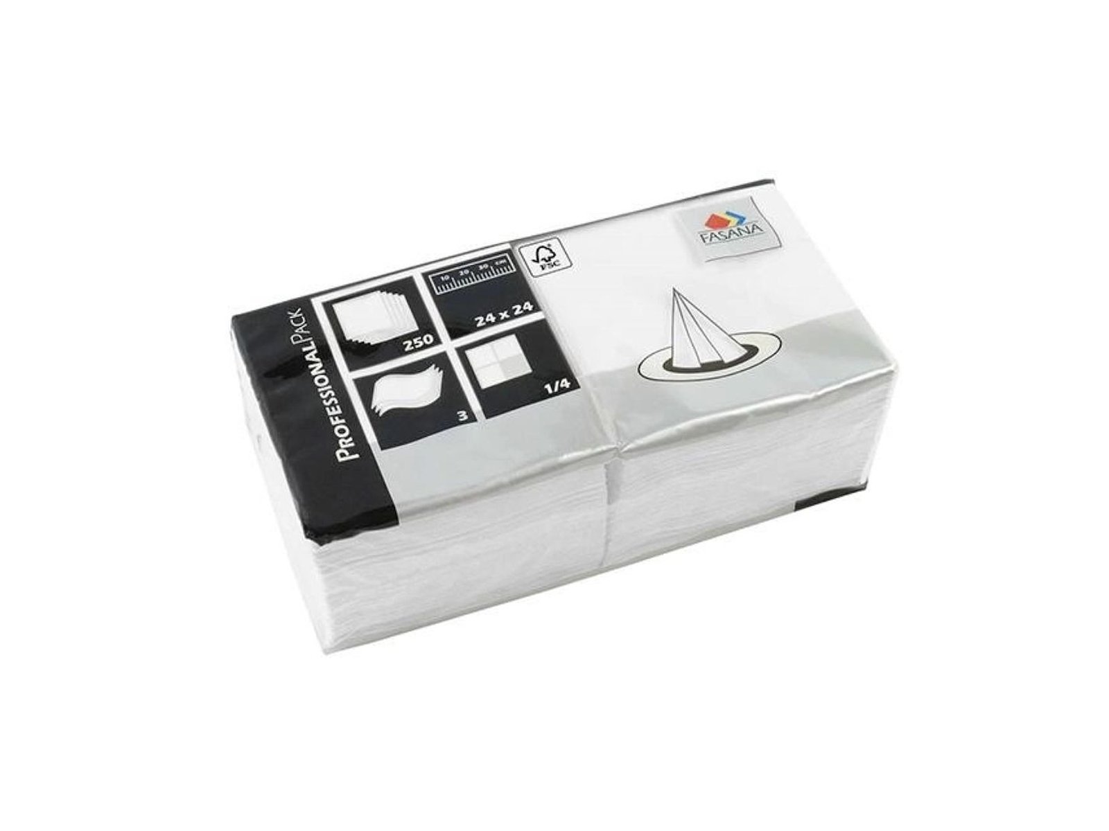Servietterne leveres i en praktisk forpakning med 1000 stk., opdelt i 4 pakker á 250 servietter. Dette gør dem velegnede til både privat brug og professionelle miljøer som caféer, restauranter og cateringfirmaer. Fasana 3-lags servietter er desuden både Svanemærkede og FSC-certificerede, hvilket sikrer, at de er produceret med hensyn til miljøet og bæredygtige ressourcer.
