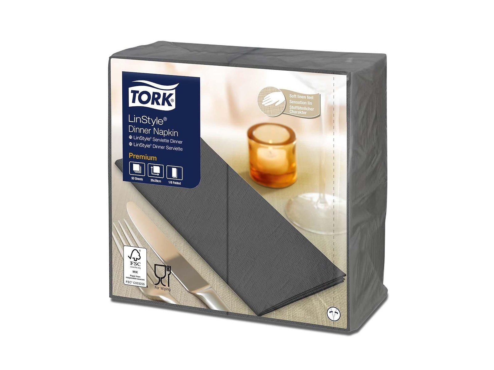 Serviet Tork Linstyle 39x39cm 1/8 foldet Antracitgrå