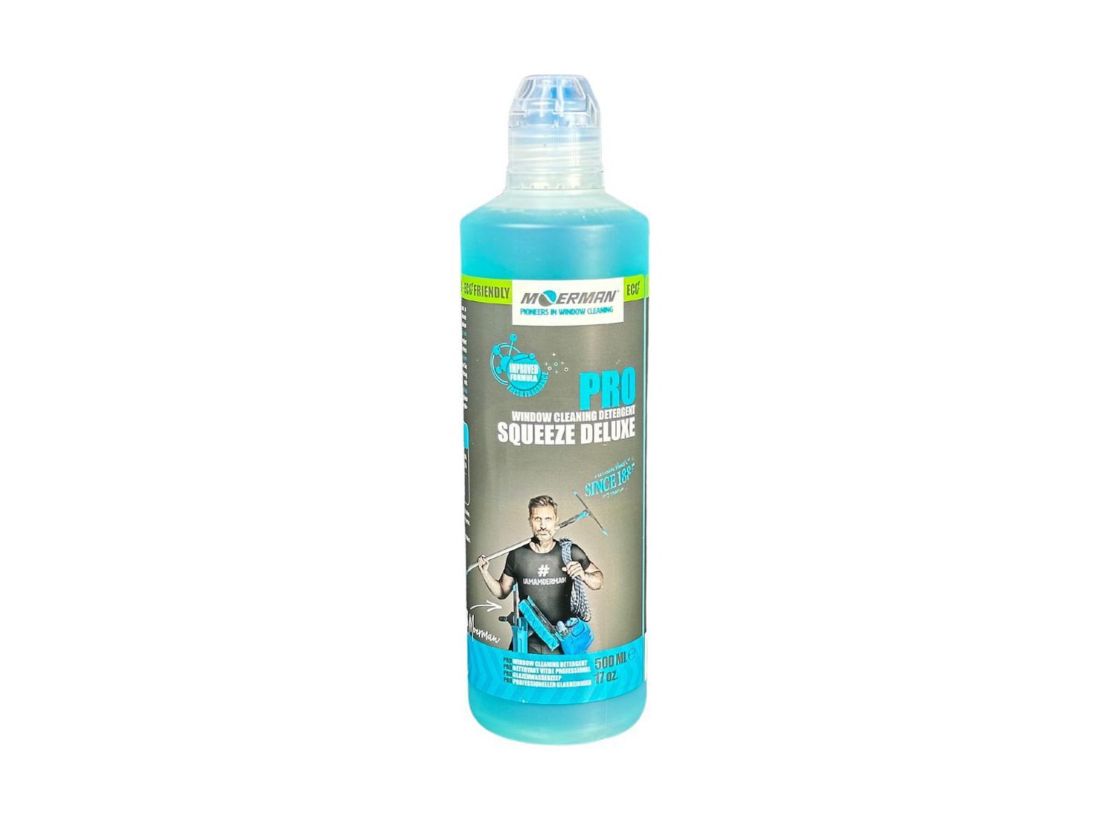 Moerman Squeeze Deluxe Vindues Gel er en vinduessæbe udviklet specielt til professionelle vinduespudsere. Dette effektive rengøringsmiddel fra Moerman kommer i en praktisk og drypfri flaske, hvor den tyktflydende væske doseres en dråbe ad gangen. For at bruge den, hælder du blot 3 dråber på det våde stripovertræk eller indvasker og vasker vinduerne ind. Den højkoncentrerede gel sikrer en grundig rengøring. Flaskens størrelse er 500 ml.