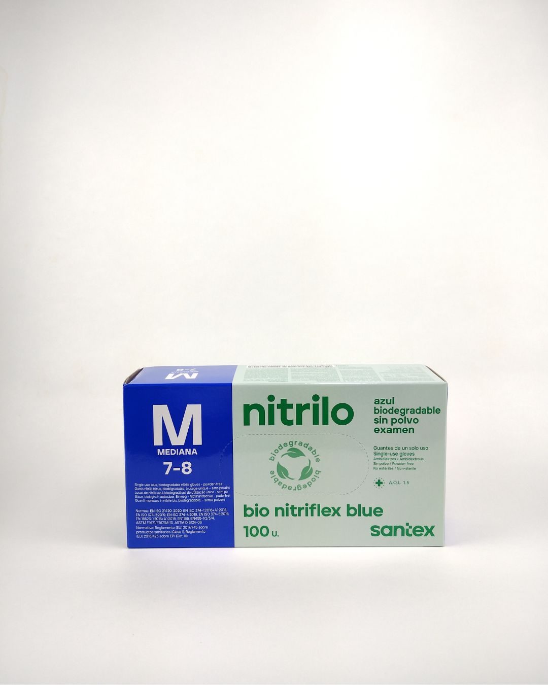 Santex Nitriflex BioBlue er udviklet med fokus på miljøet og opfylder ASTM D5511 og ASTM D5526, som dokumenterer biologisk nedbrydning under kontrollerede forhold. Handskerne har en forventet holdbarhed på 5 år, når de opbevares korrekt, og leverer stabil kvalitet gennem hele levetiden.