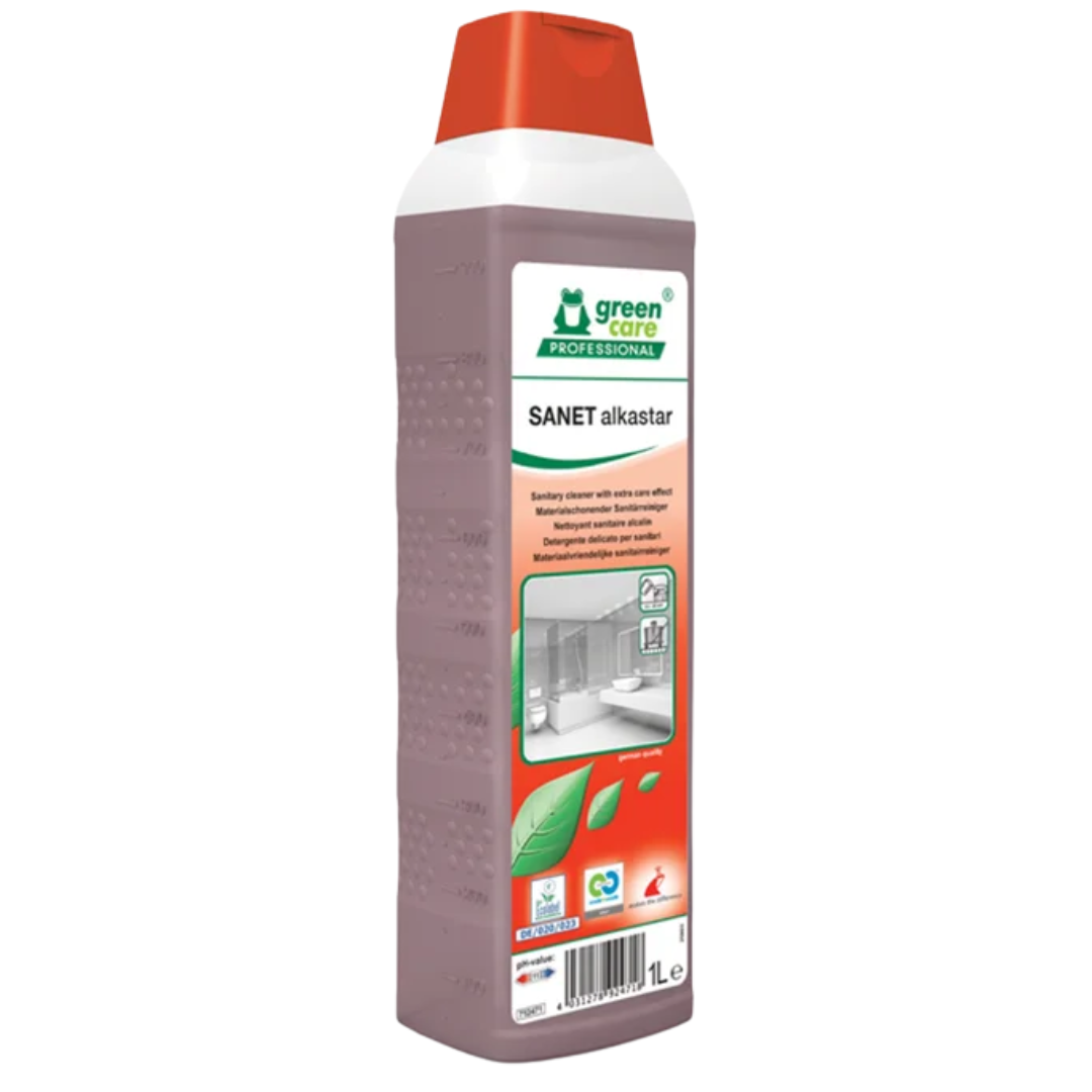 Når der skal gøres grundigt rent i toilet- og badeområder, og du samtidig ønsker et skånsomt og bæredygtigt valg, er SANET Alkastar det oplagte produkt. Det er en alkalisk sanitetsrengøring, der kombinerer effektivitet og høj materialekompatibilitet med omtanke for både miljø og brugerens sundhed.